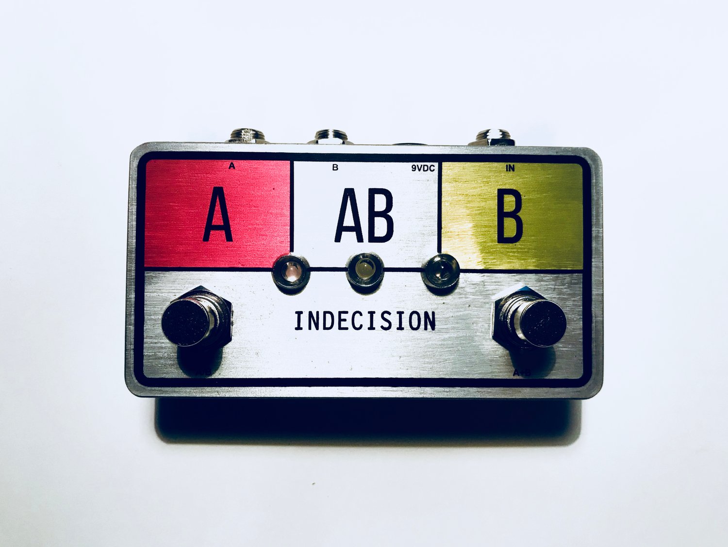 Featuring retina-burningly bright* Pink/White/Yellow LED's, a small 1590B footprint, and True Bypass switching, INDECISION is the only decision for your dual-amping needs.
